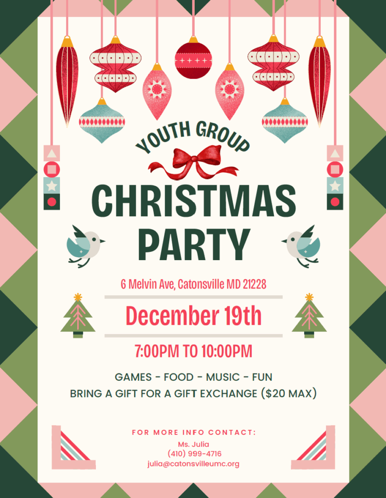 If you know anyone interested in joining Youth Group at Catonsville UMC please feel free to reach out with any questions you may have or to get more information about upcoming events!